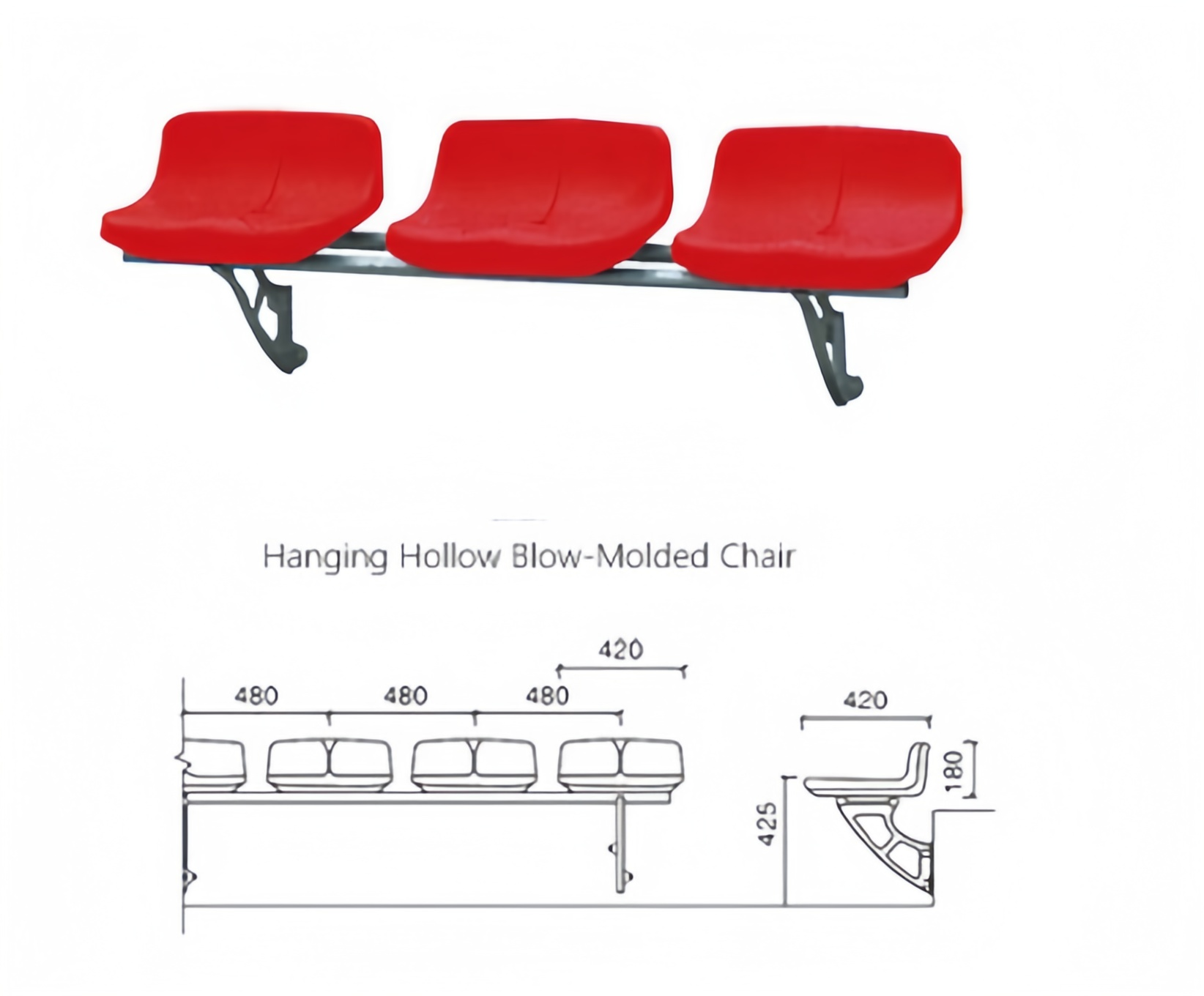 Seats: HDPE hollow blow molding, impact-resistant, fade-resistant, front-mounted/flat-mounted options available