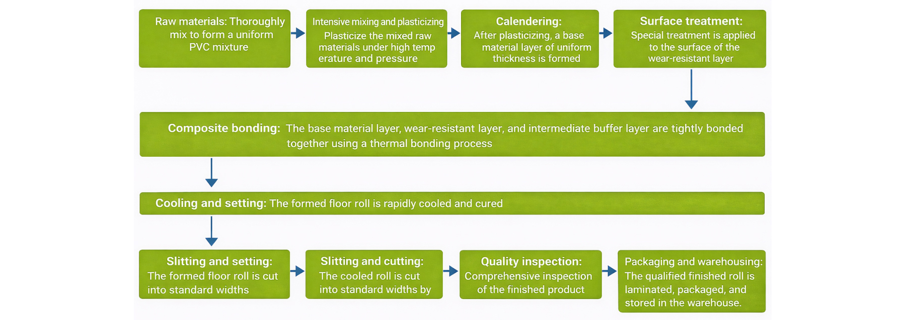 The product structure consists of: a sand-textured surface layer, a 100% pure PVC wear-resistant layer, and a low-calcium reinforcement layer plus a dense reinforcement layer, enhancing hardness, support, and stiffness. The bottom surface features a textured finish, and its reasonable weight allows air to be expelled when the surface is laid out, creating a vacuum that improves adhesion and stability during exercise.